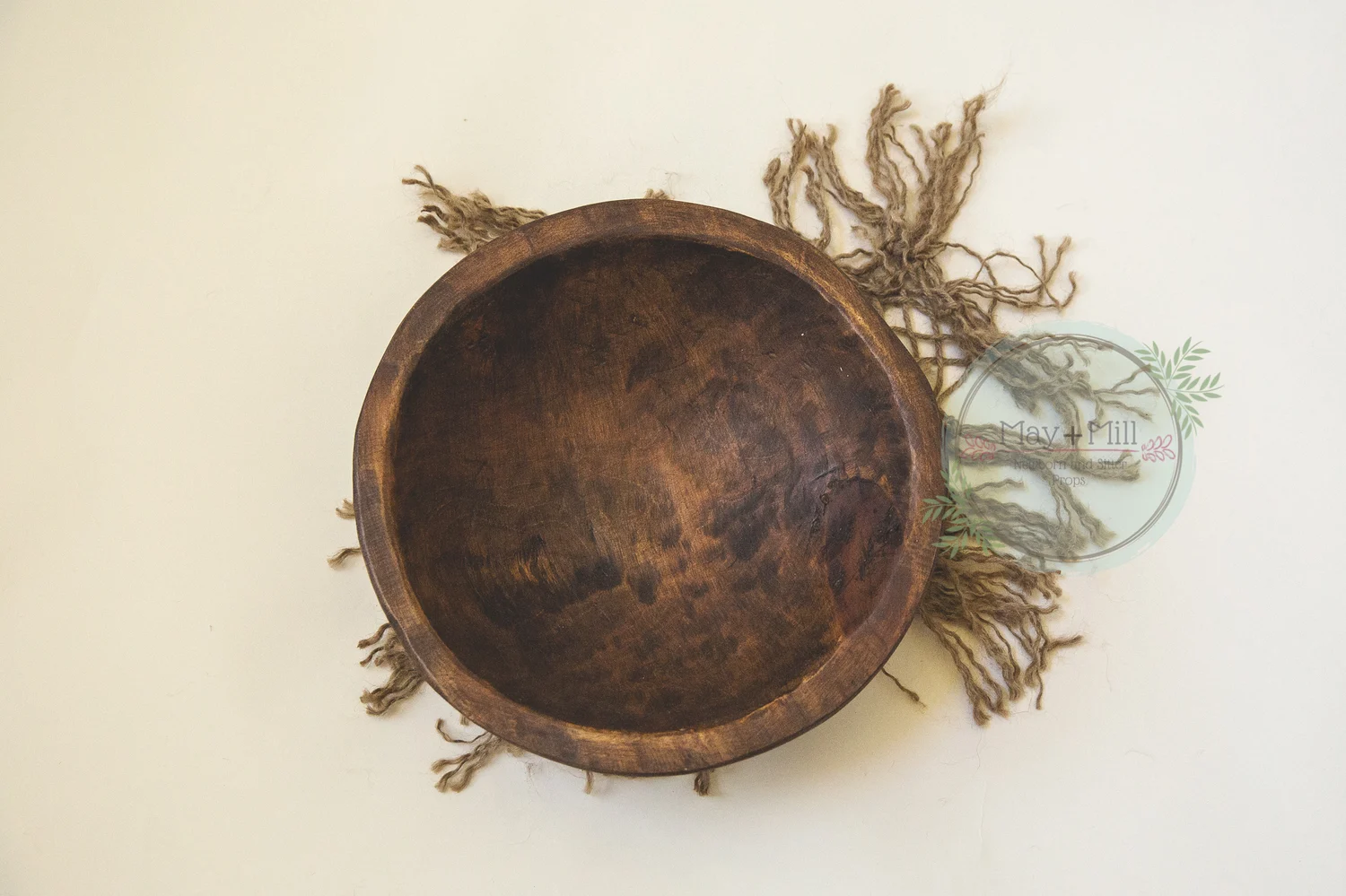 Crafted from solid wood with a warm natural finish, the bowl pairs beautifully with wraps, blankets, and textured layers. Its softly worn, vintage-inspired character adds depth and warmth without distracting from the baby, making it a versatile staple for organic and neutral newborn sessions.