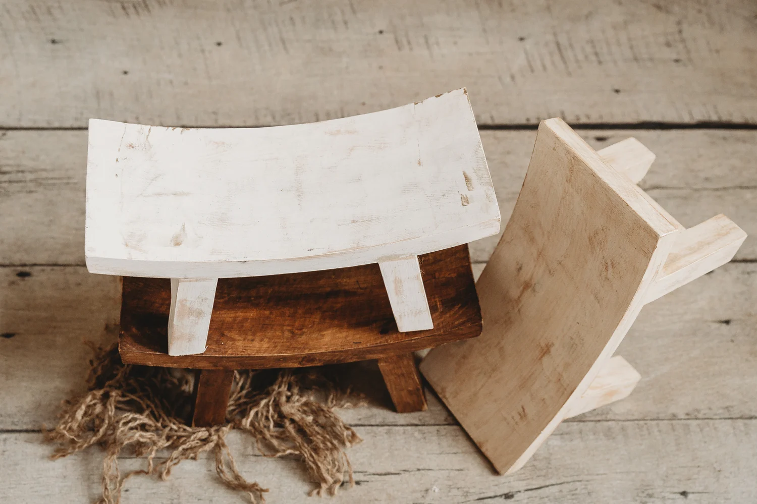 Round Newborn Sitter Stool – White is designed to support seated newborn poses during professional photography sessions. The rounded form allows for flexible styling while providing a stable structure appropriate for controlled newborn positioning. This stool works seamlessly with wraps, layers, and blankets to support a variety of newborn photography compositions.